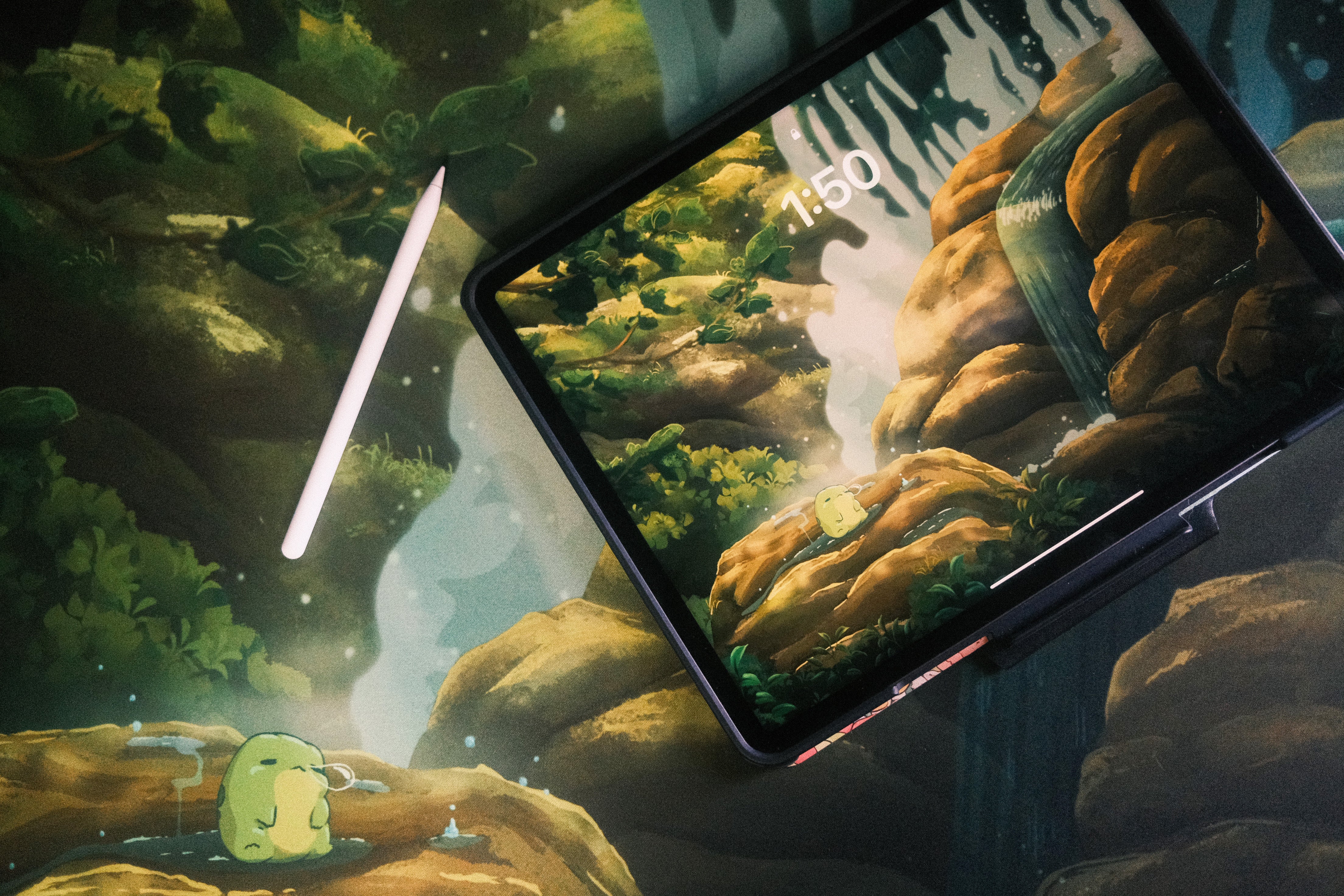 A serene scene for your desk, complete with it's own snoozing frog buddy!